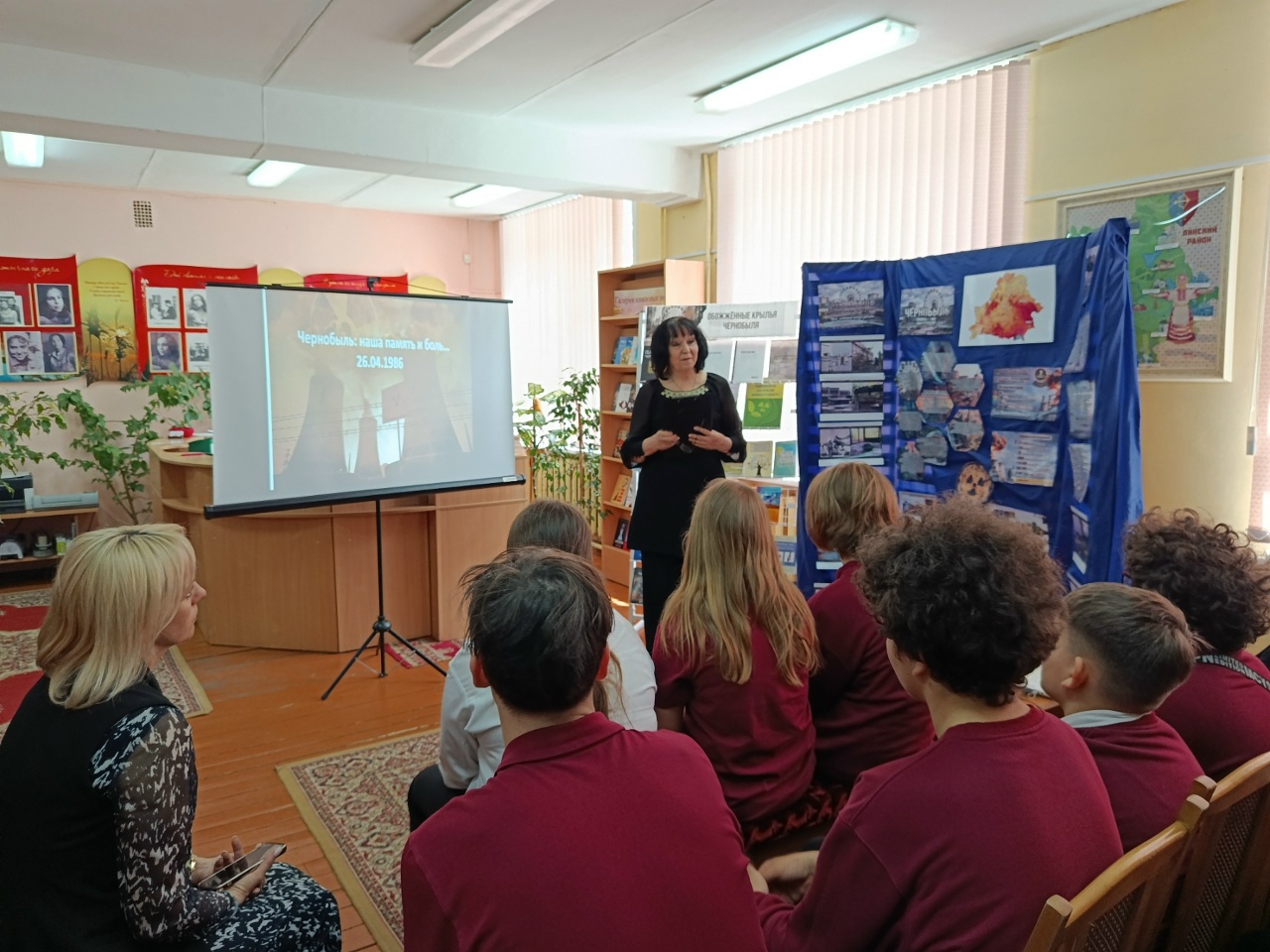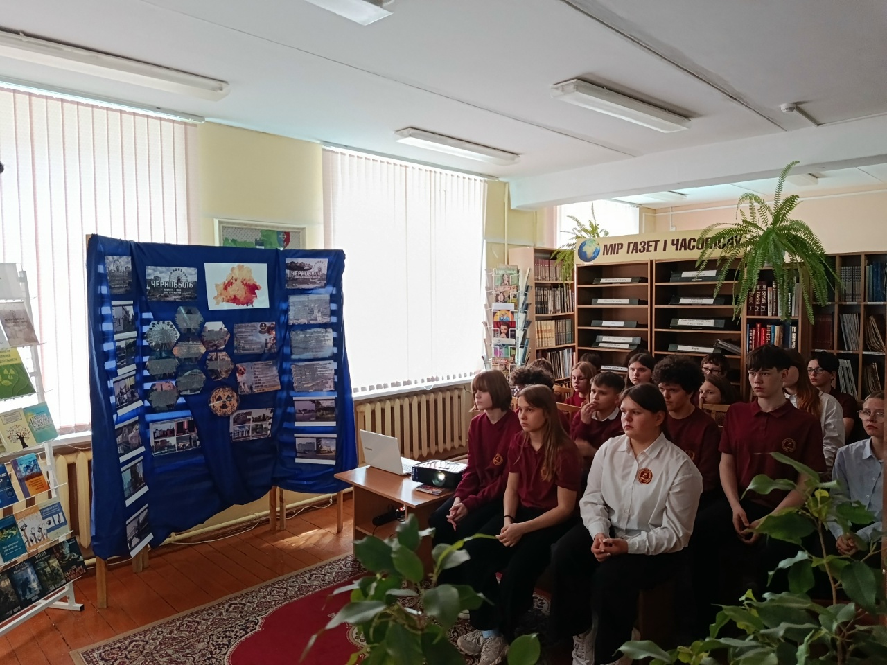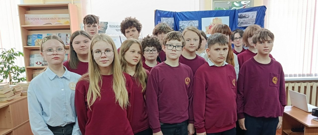 В Пинской центральной районной библиотеке имени Е.Янищиц к 40-й годовщине аварии на Чернобыльской АЭС для учащихся 7 класса ГУО «Средняя школа №12» прошёл час мужества «Чернобыль: чёрная быль».