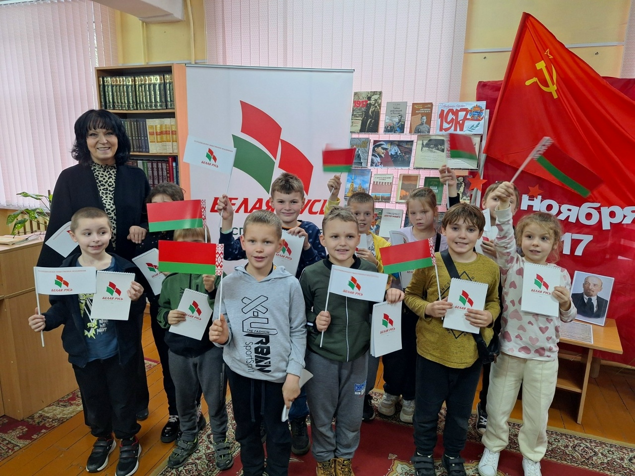 Ко Дню Октябрьской революции в центральной районной библиотеке имени Е. Янищиц для воспитанников оздоровительного лагеря “Радуга” при ГУО “Гимназия №1 имени Ф.Я.Перца г.Пинска”состоялся интерактивный урок “Путешествие в 1917 год”, организованный при поддержке Пинской районной организации РОО “Белая Русь”.