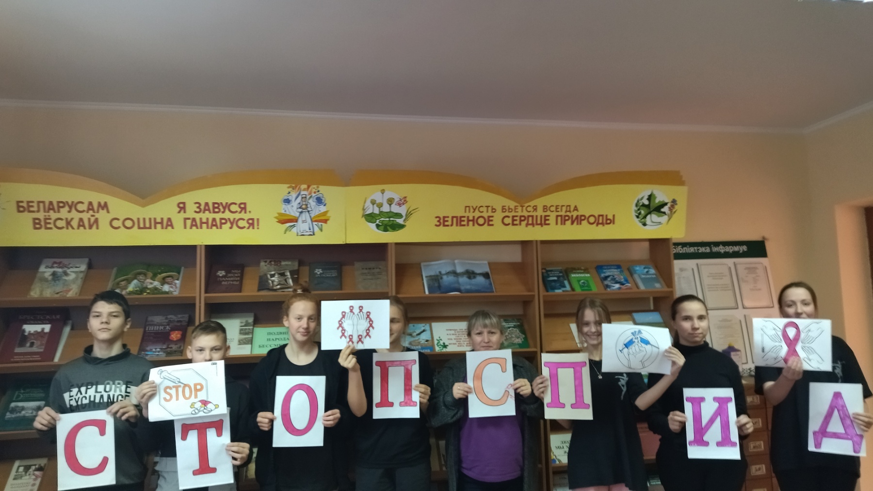 Свой вклад в расширение информированности населения по вопросу ВИЧ-инфекции и СПИД вносят и библиотеки. Мероприятия, направленные на привлечение внимания к распространенности ВИЧ-инфекции прошли в сельских библиотеках Пинского района. Сотрудники библиотеки познакомили слушателей с историей появления Всемирного дня профилактики ВИЧ-инфекции, рассказали о путях заражения ВИЧ-инфекцией и способах профилактики. Были оформлены книжные выставки и состоялись мероприятия для подростков и молодежи: диспуты, вечера-диалоги, информ-дайджесты, уроки-предупреждения. Каждый участник получил информационную листовку.