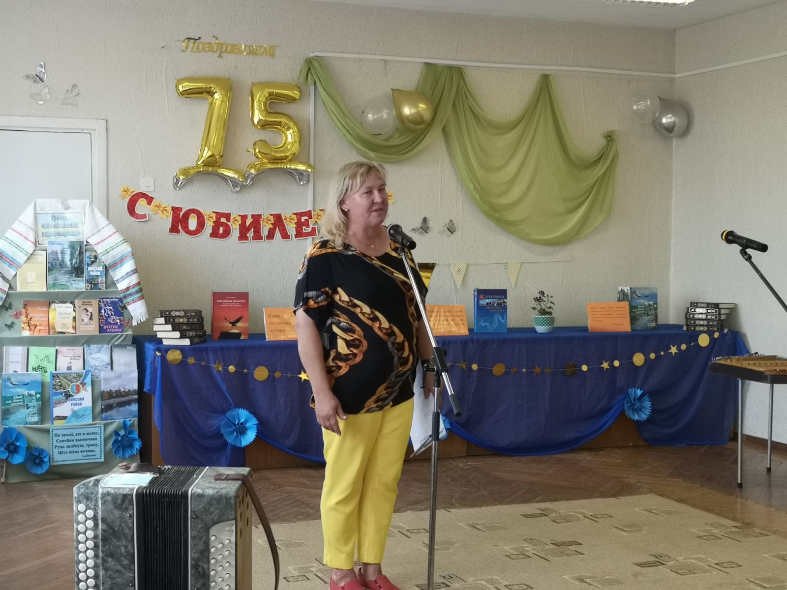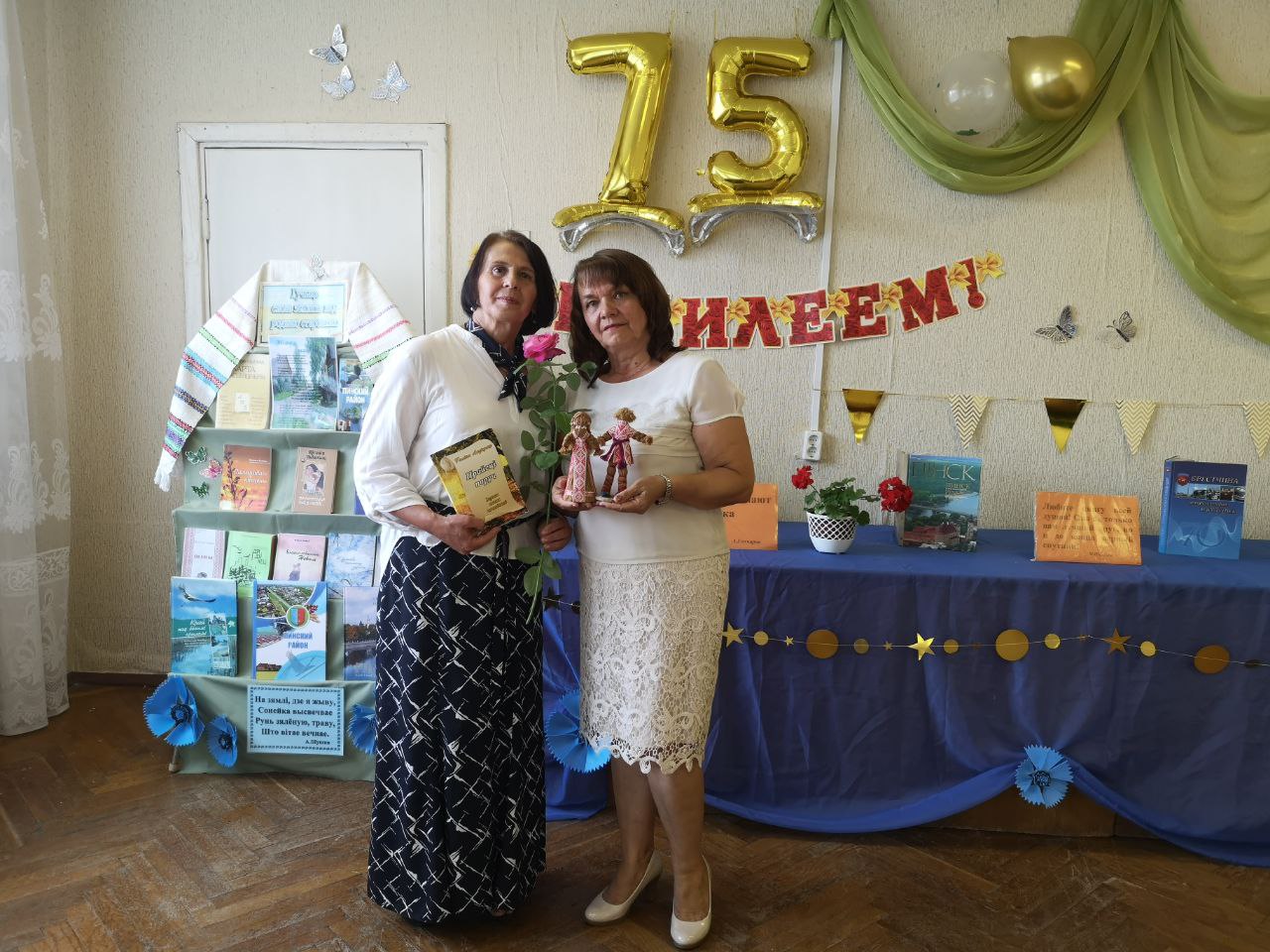 В юбилейный день библиотеку и ее работника торжественно поздравили директор государственного учреждения культуры «Пинская районная централизованная библиотечная система» Ольга Михайловна Антончук, местная поэтесса, участница клуба литераторов Пинщины «Пінчукі» Галина Иосифовна Лозицкая, заведующий Центром традиционной культуры и быта «Спадчына Палесся» Татьяна Леонидовна Вакулич, ветеран труда библиотечного дела Галина Степановна Казак.