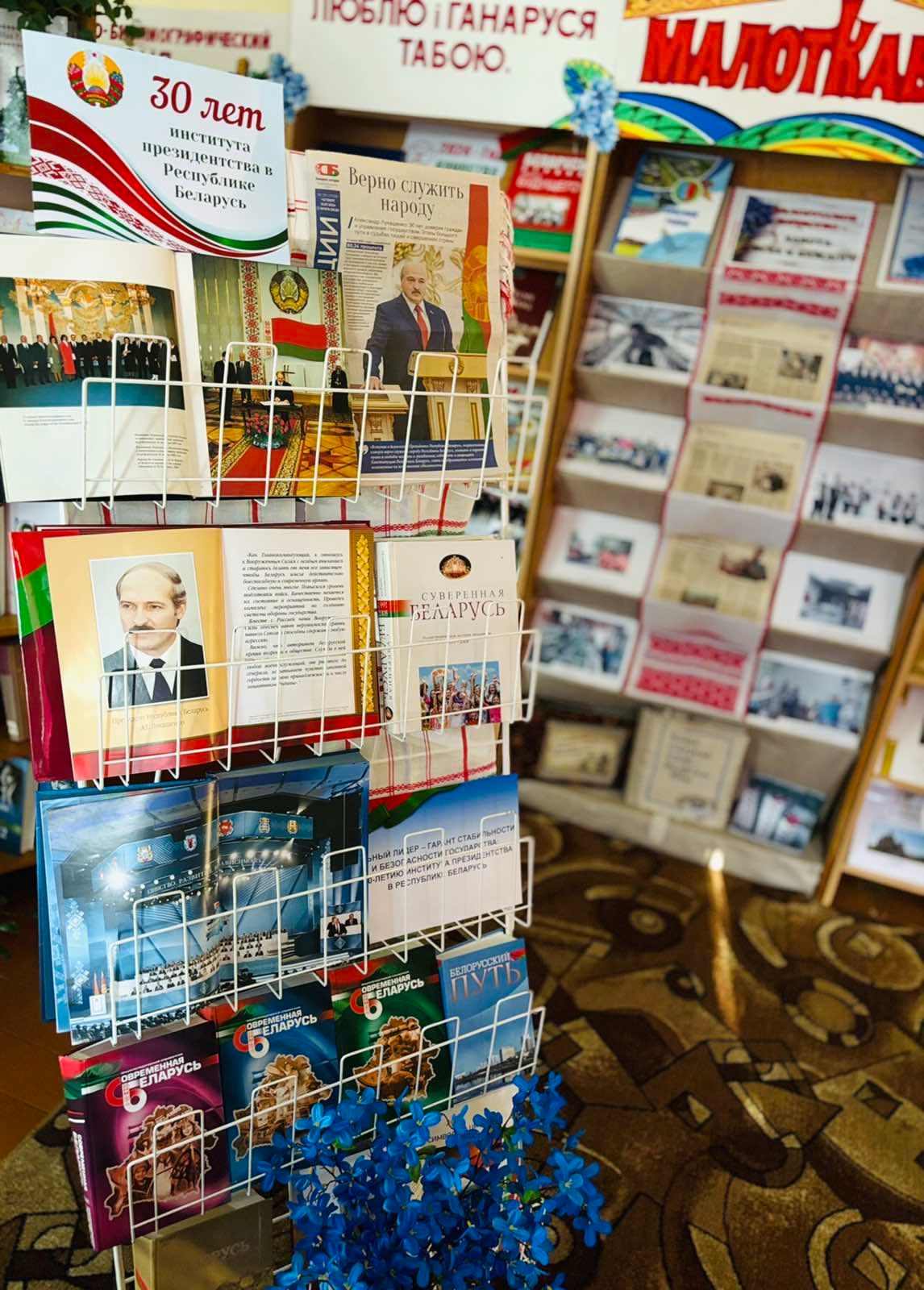 А тематические выставки литературы наглядно отражают основы государственности, общечеловеческие и гуманистические ценности, духовные и культурные традиции белорусского народа.