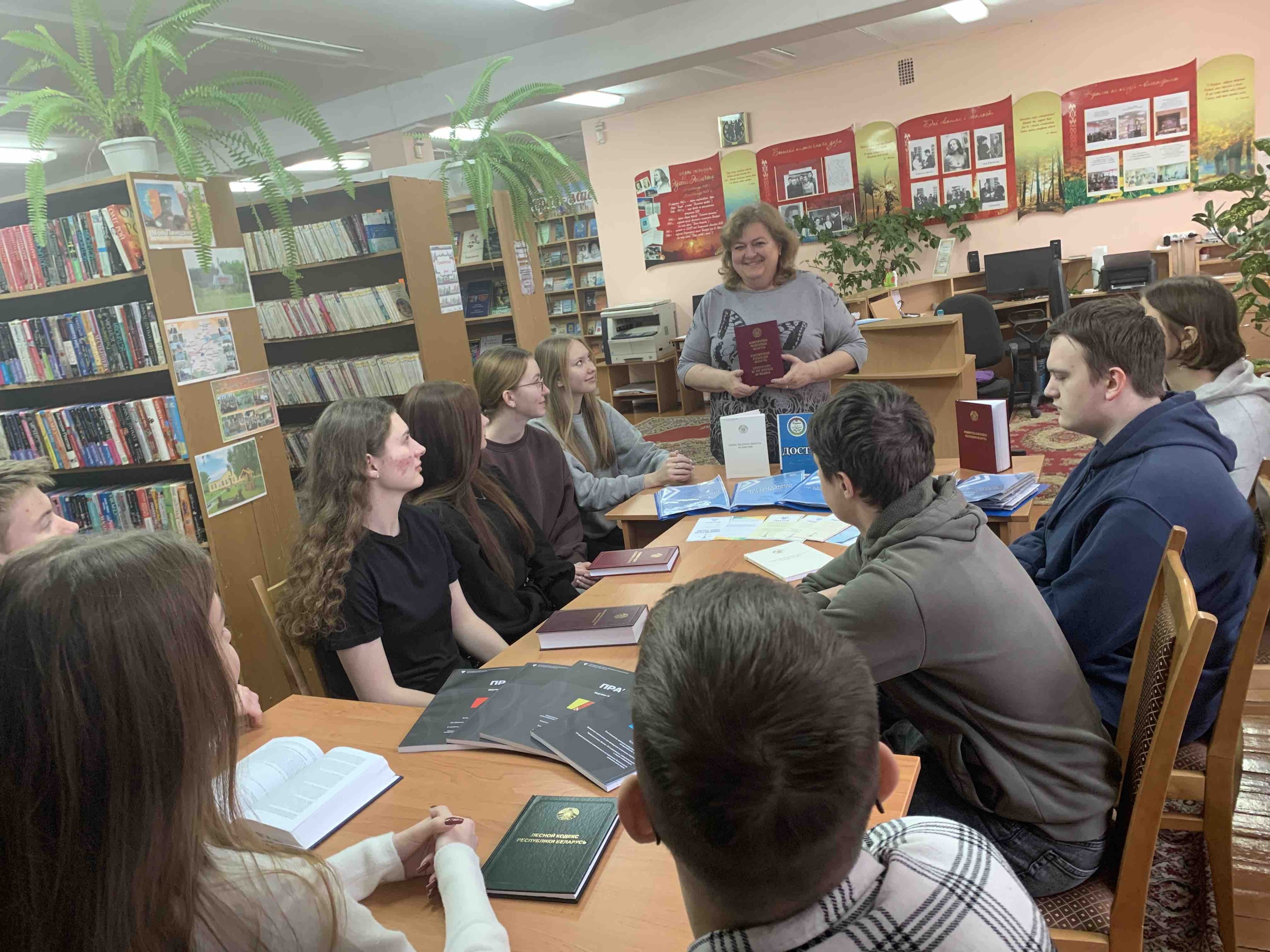 Участникам мероприятия было рассказано об основном документе страны – Конституции Республики Беларусь, об основных её разделах. Также была представлена выставка правовой литературы, рассказано о работе публичного центра правовой информации, о проекте “Закон доступен каждому”.