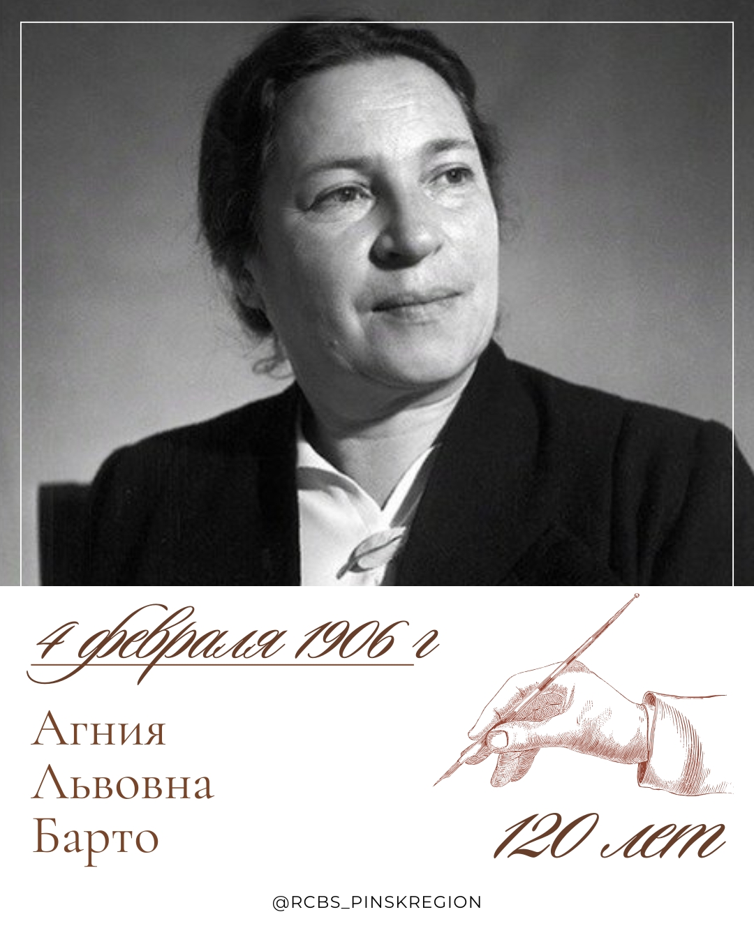Агния Львовна Барто (1906–1981 гг.) – российский и советский детский писатель, киносценарист.Родилась 17 февраля 1906 г., в Москве, в семье ветеринарного врача. Начальное образование в биографии Агнии Барто было получено дома. Затем она поступила учиться в гимназию, а также посещала хореографическое училище.