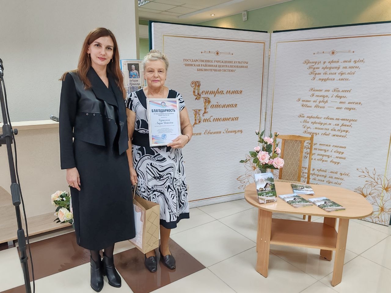 Гости вечера окунулись в мир искренней лирики, пронизанной любовью к малой родине, её людям и простым жизненным ценностям. С поздравительными словами и тёплыми пожеланиями выступили директор ГУК «Пинская районная централизованная библиотечная система» Ольга Антончук, председатель клуба литераторов Пинщины «Пінчукі» Жанна Завацкая, коллеги и друзья по творчеству.