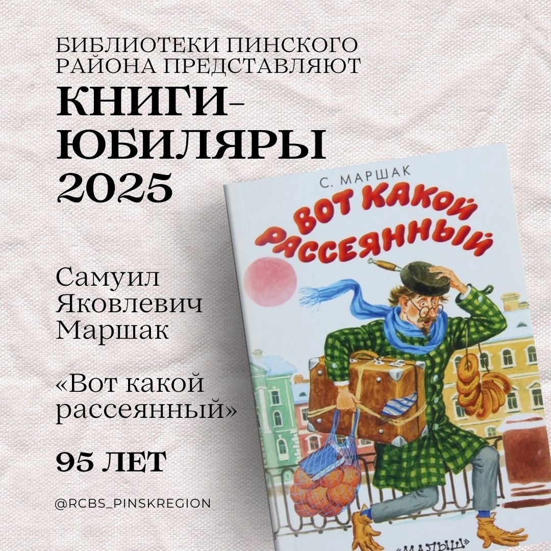 Библиотеки Пинского района представляют. В 2025 году исполняется 95 лет с момента первой публикации стихотворения «Вот какой рассеянный» (1930) Самуила Маршака.