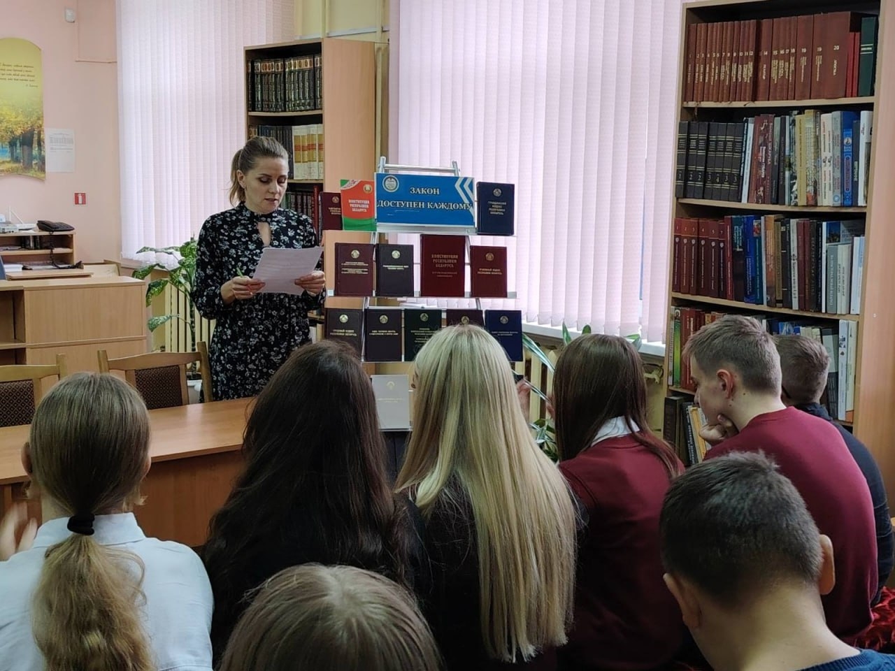 30 октября в Центральной районной библиотеке имени Е. Янищиц в рамках правового проекта “Закон доступен каждому” состоялся правовой час «Правовые проблемы молодежи» для учащихся 8«Б» класса Средней школы №12 г. Пинска. Школьникам рассказали о возможностях Публичного центра правовой информации, работающего на базе библиотеки, объяснили, как центр помогает молодежи ориентироваться в правовом поле.