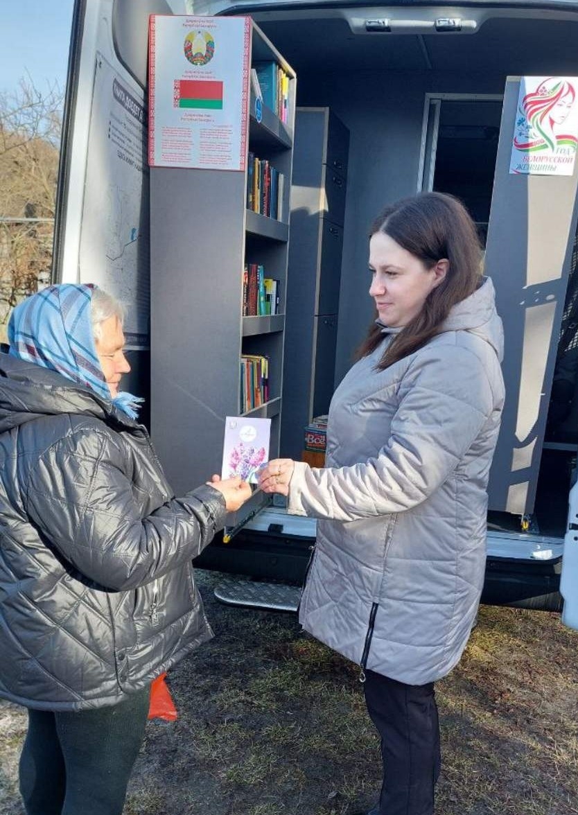 В преддверии Дня женщин передвижная библиотека посетила отдаленные и малонаселенные пункты Пинского района, чтобы поздравить своих читательниц с праздником весны.