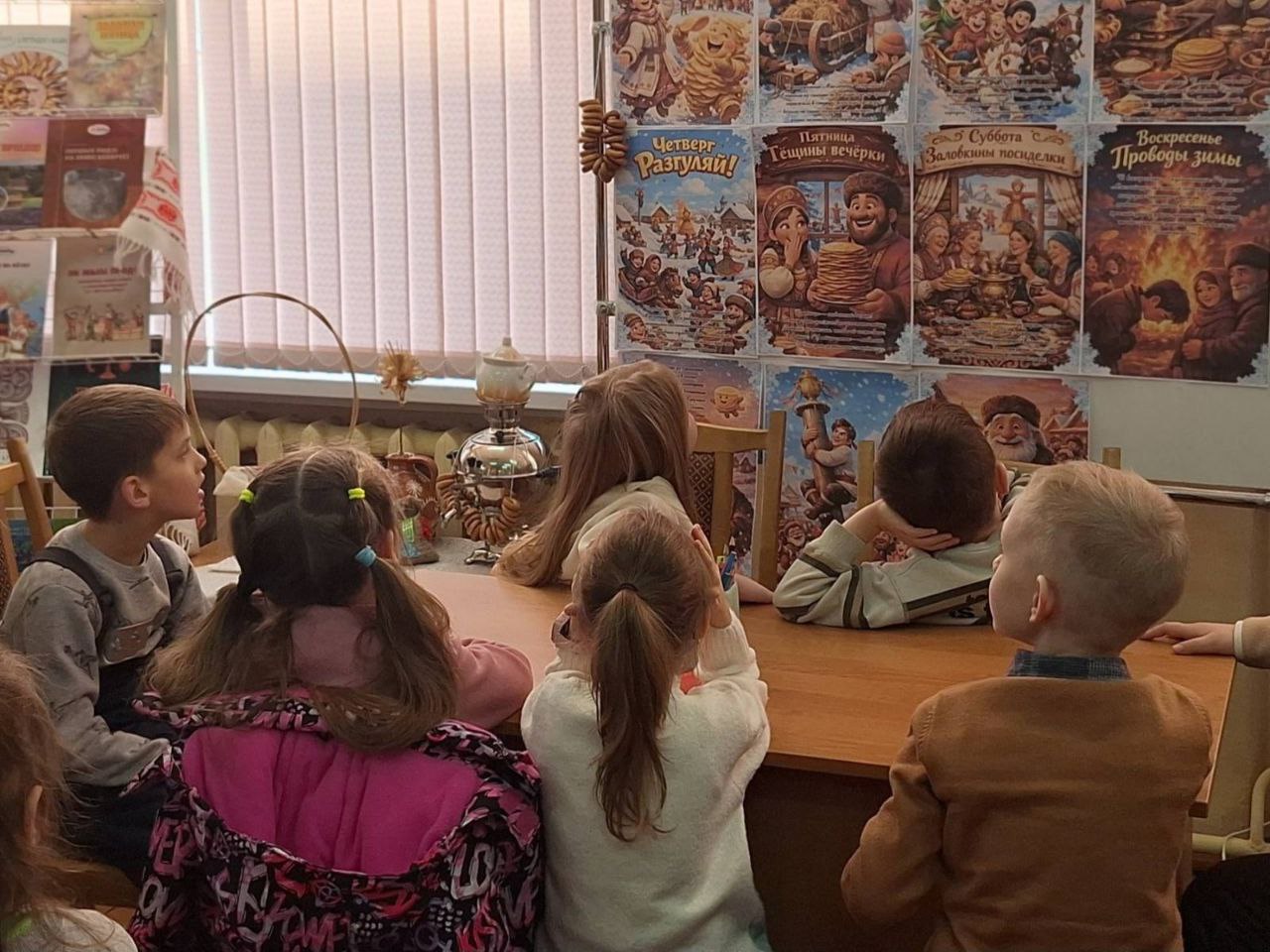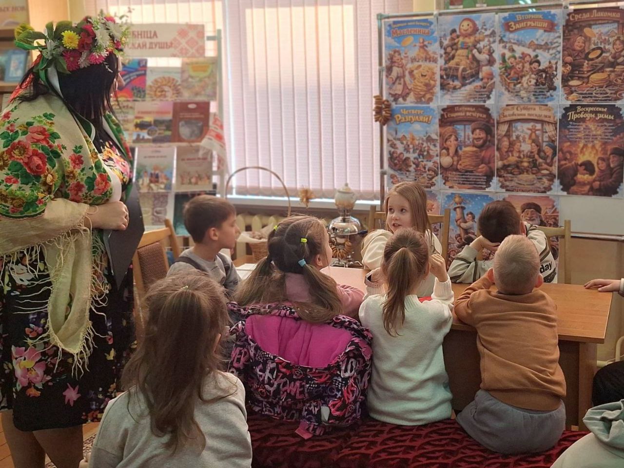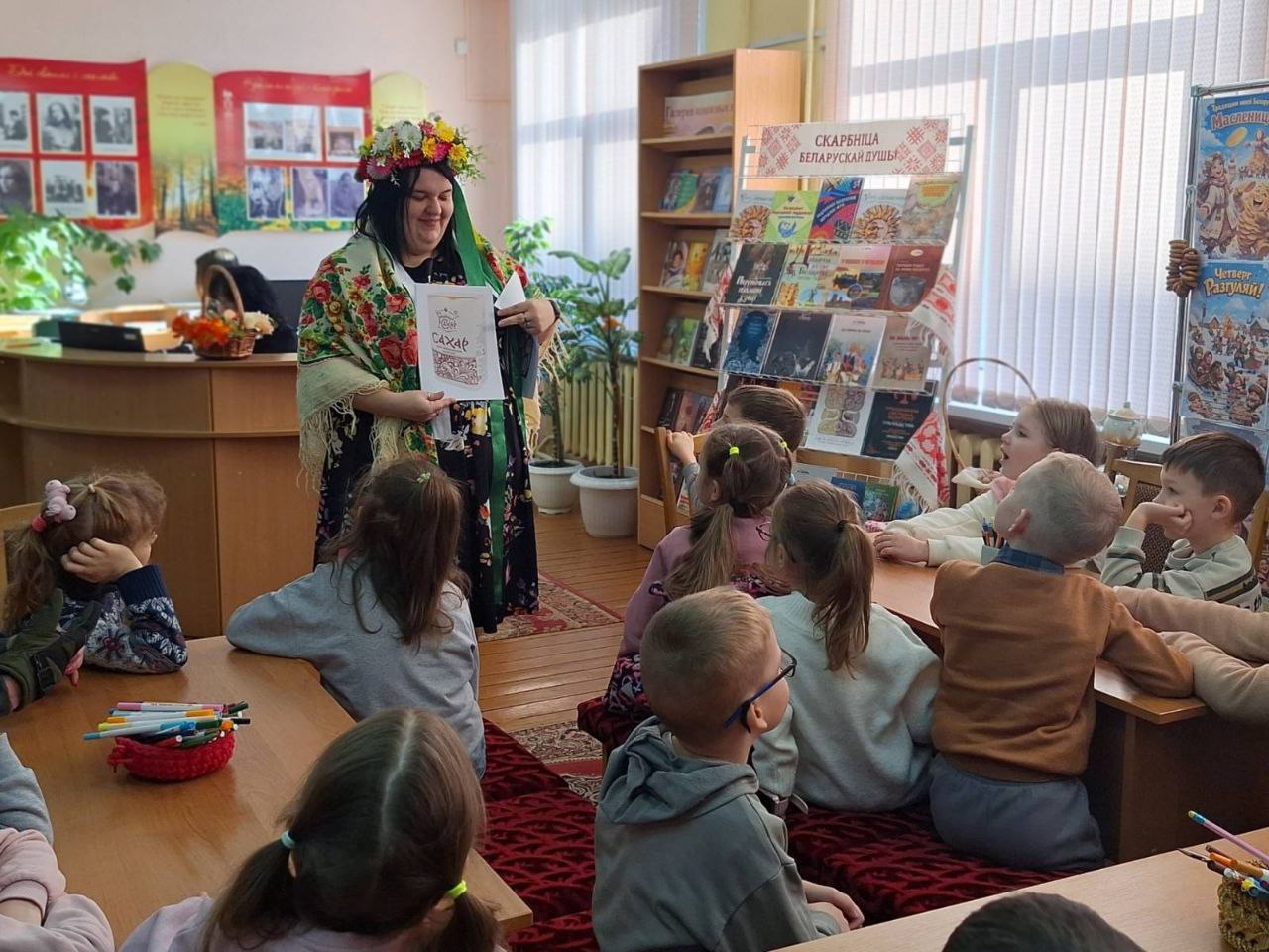 У Пінскай цэнтральнай раённай бібліятэцы імя Я.Янішчыц у рамках праекта “Скарбніца беларускай душы” для выхаванцаў лагера “Вясёлка” пры “Гімназіі №1 імя Ф.Я.Перца” прайшла тэматычная праграма з кругаваротам станцый “Шырокая Масленіца: бліны, гульні, казкі”.