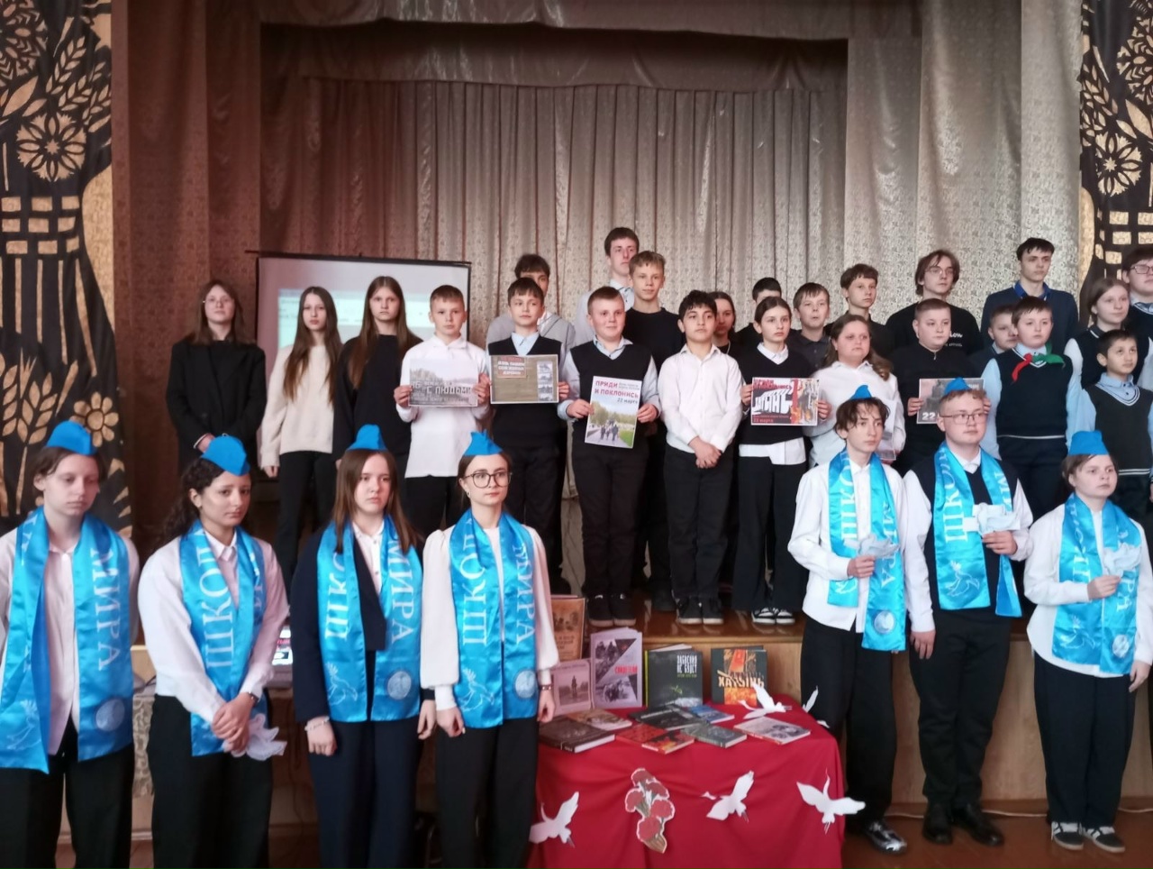 Ребята выступили с пронзительными докладами о трагедии 1943 года. Вместе с библиотекарем школьники совершили виртуальную экскурсию в мемориальный комплекс «Хатынь» и узнали о белорусских деревнях, которые разделили её судьбу.