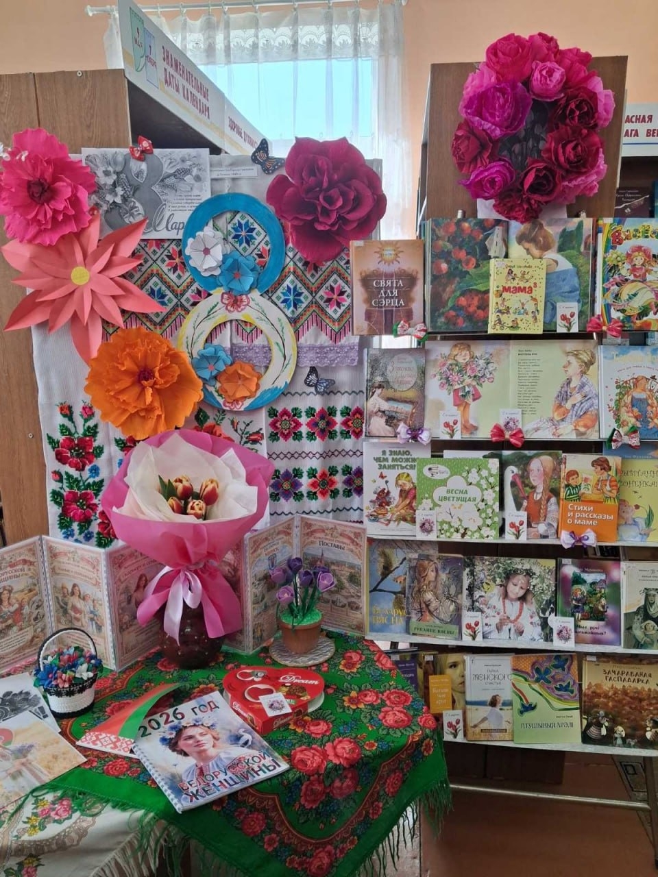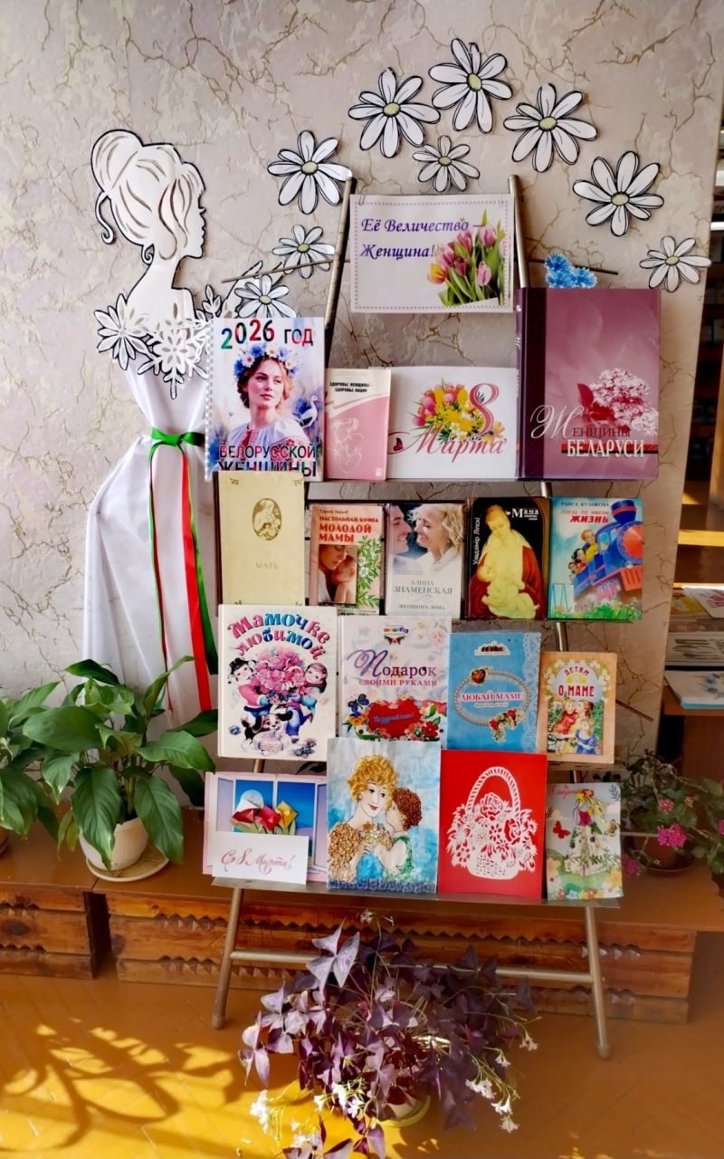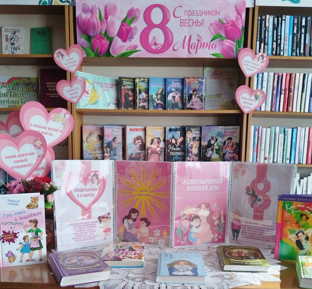 Посетители могут познакомиться с произведениями белорусских и зарубежных авторов, поэтическими сборниками и книгами о женских судьбах. Для создания праздничного настроения оформлены фотозоны с весенним декором.