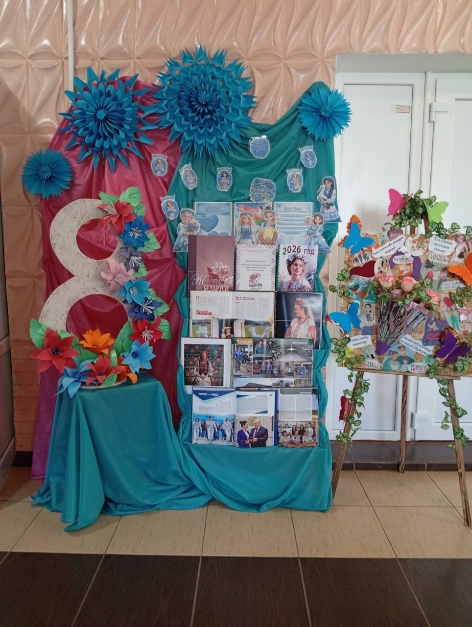 В библиотеках ко Дню женщин подготовлены тематические выставки и праздничные фотозоны.