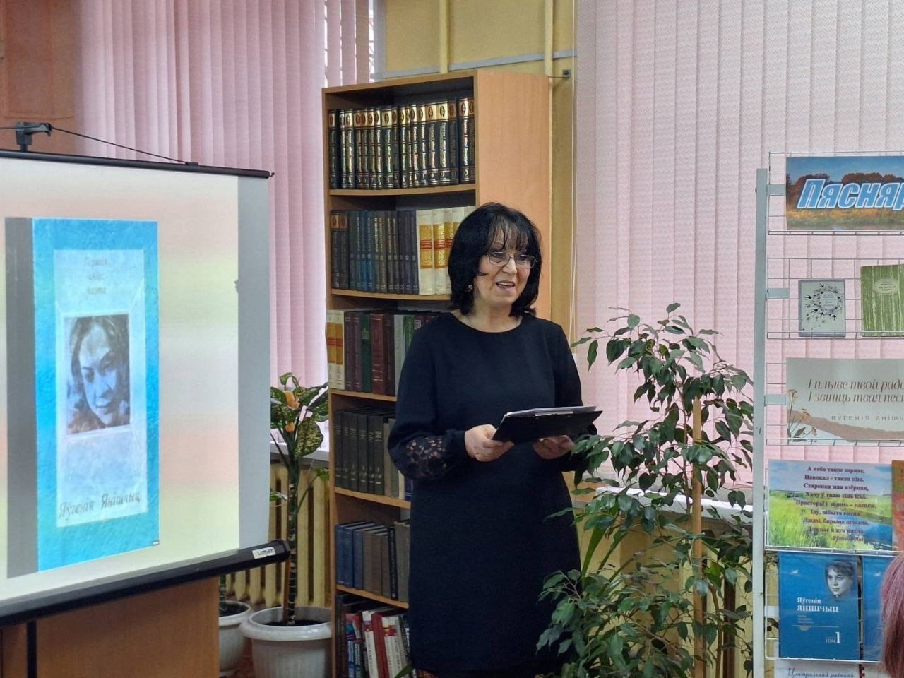 Творчасць паэткі была неразрыўна звязана з Палессем, з роднай вёскай, сям’ёй. У уступным слове бібліятэкар паведаміла кароткую біяграфію, паказала фотаздымкі і архіўныя кадры. Цікава было паслухаць гасцей мерапрыемства, членаў клуба літаратараў Піншчыны “Пінчукі”, якія чыталі свае прысвечаныя творы Яўгеніі Янішчыц і роднаму краю.